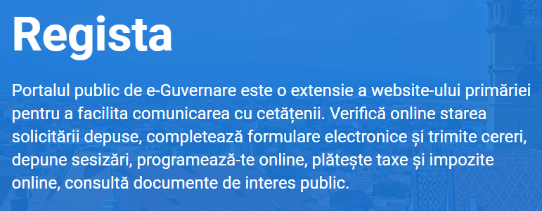 Portalul public de e-Guvernare este o extensie a website-ului primăriei pentru a facilita comunicarea cu cetățenii.