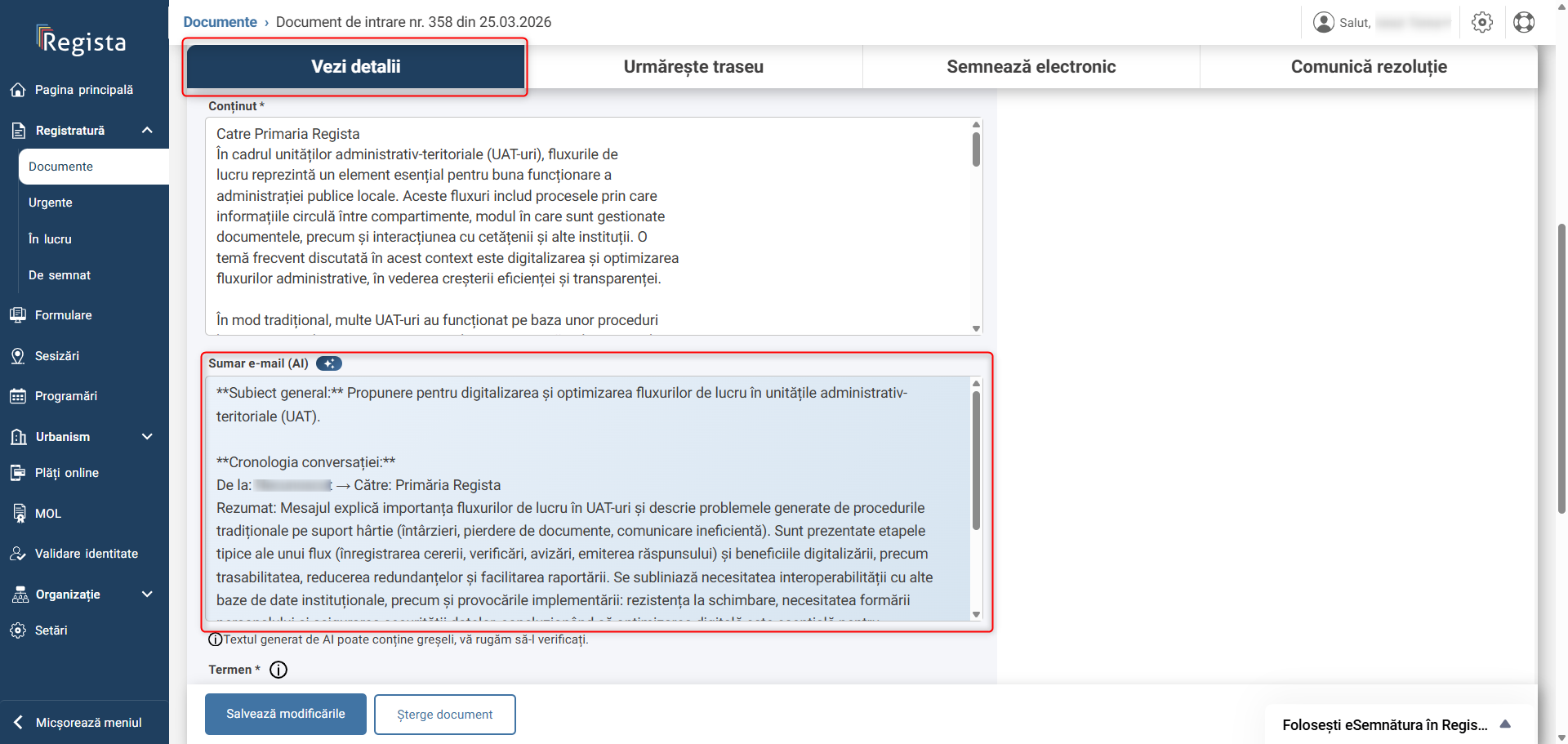 Modificare document - Registratura PRO